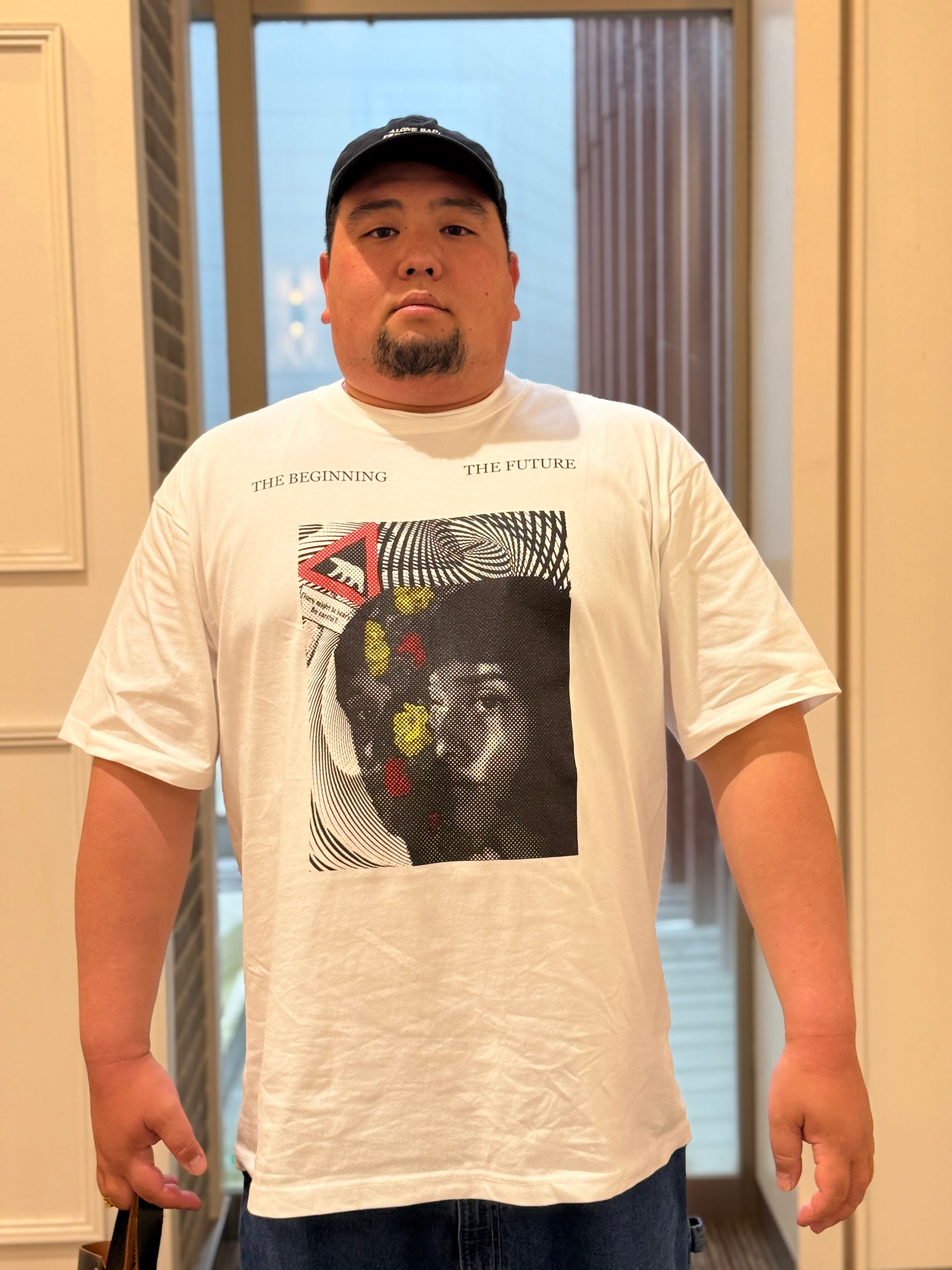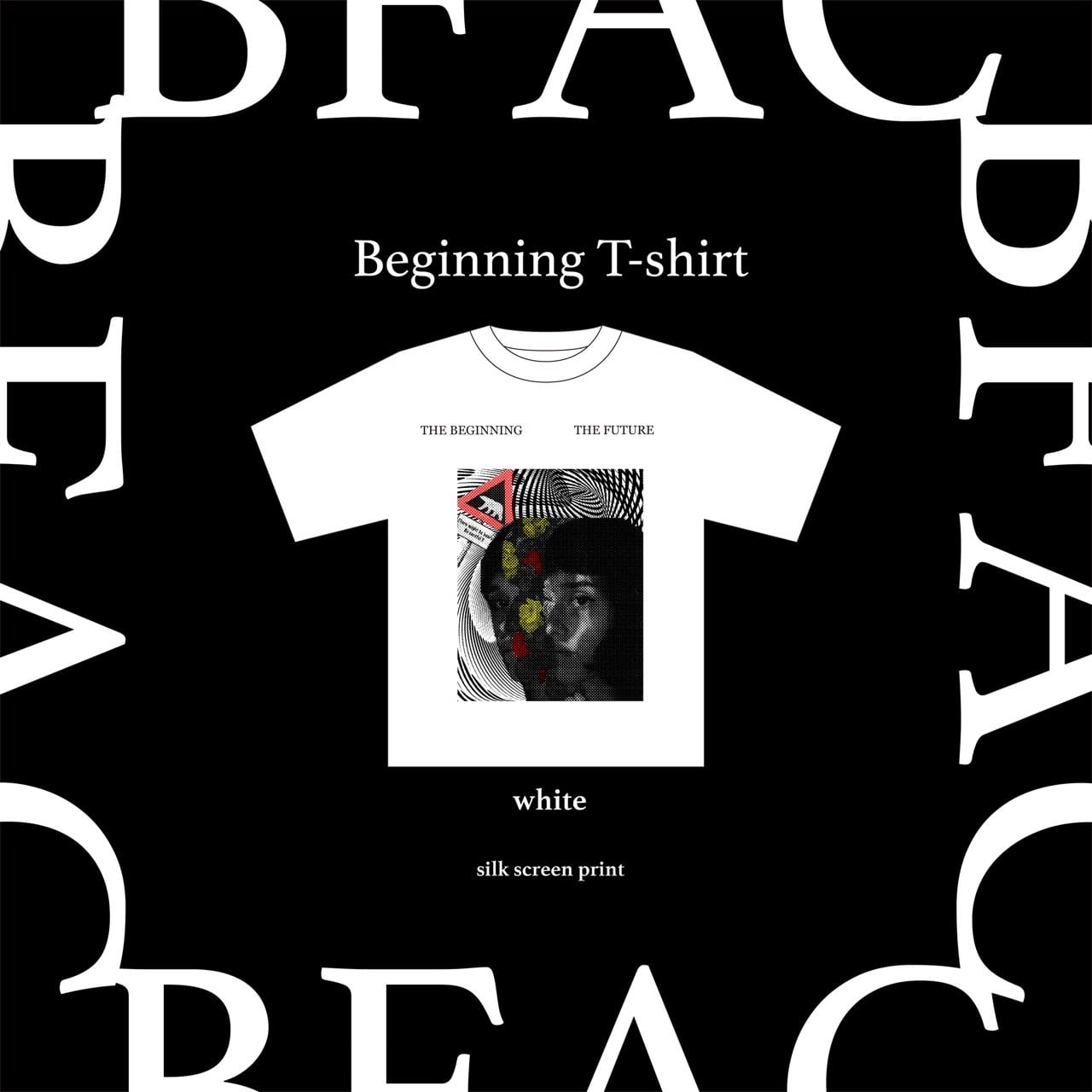 フロントに新作のグラフィックデザインを入れています。上にTHE BEGINNING、THE FUTUREの文字を入れています。