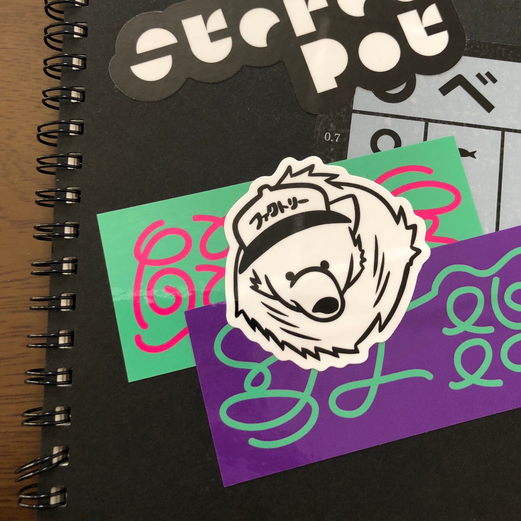 熊工房ロゴステッカー2枚と熊のキャラクターのステッカー3枚セットです。