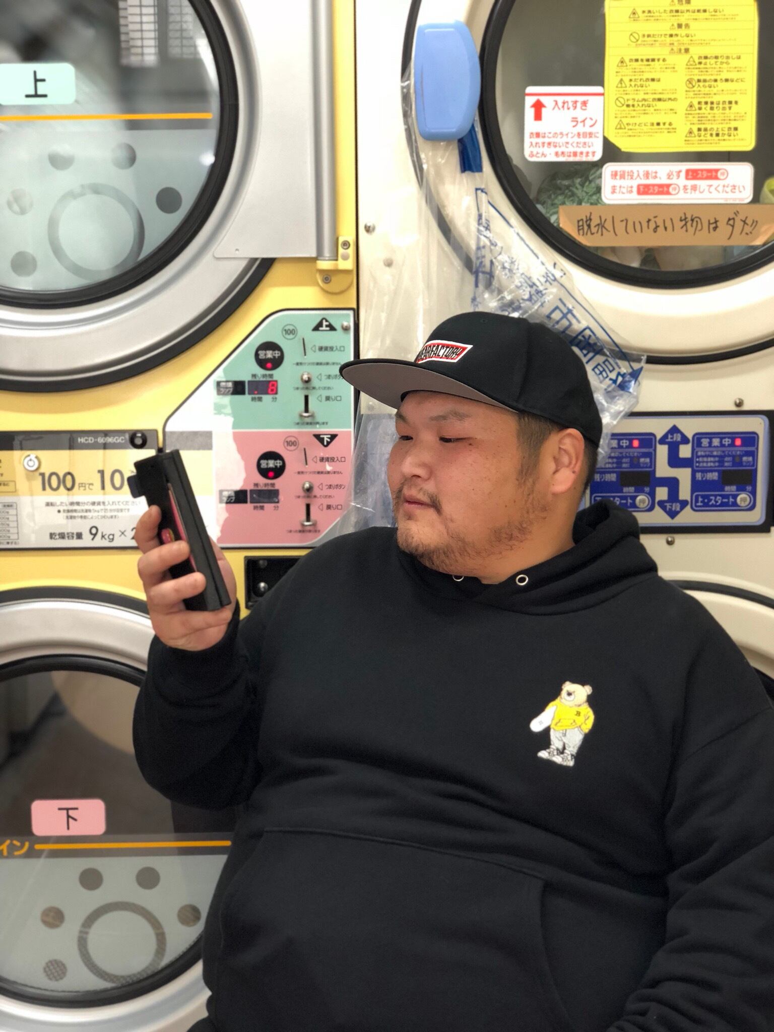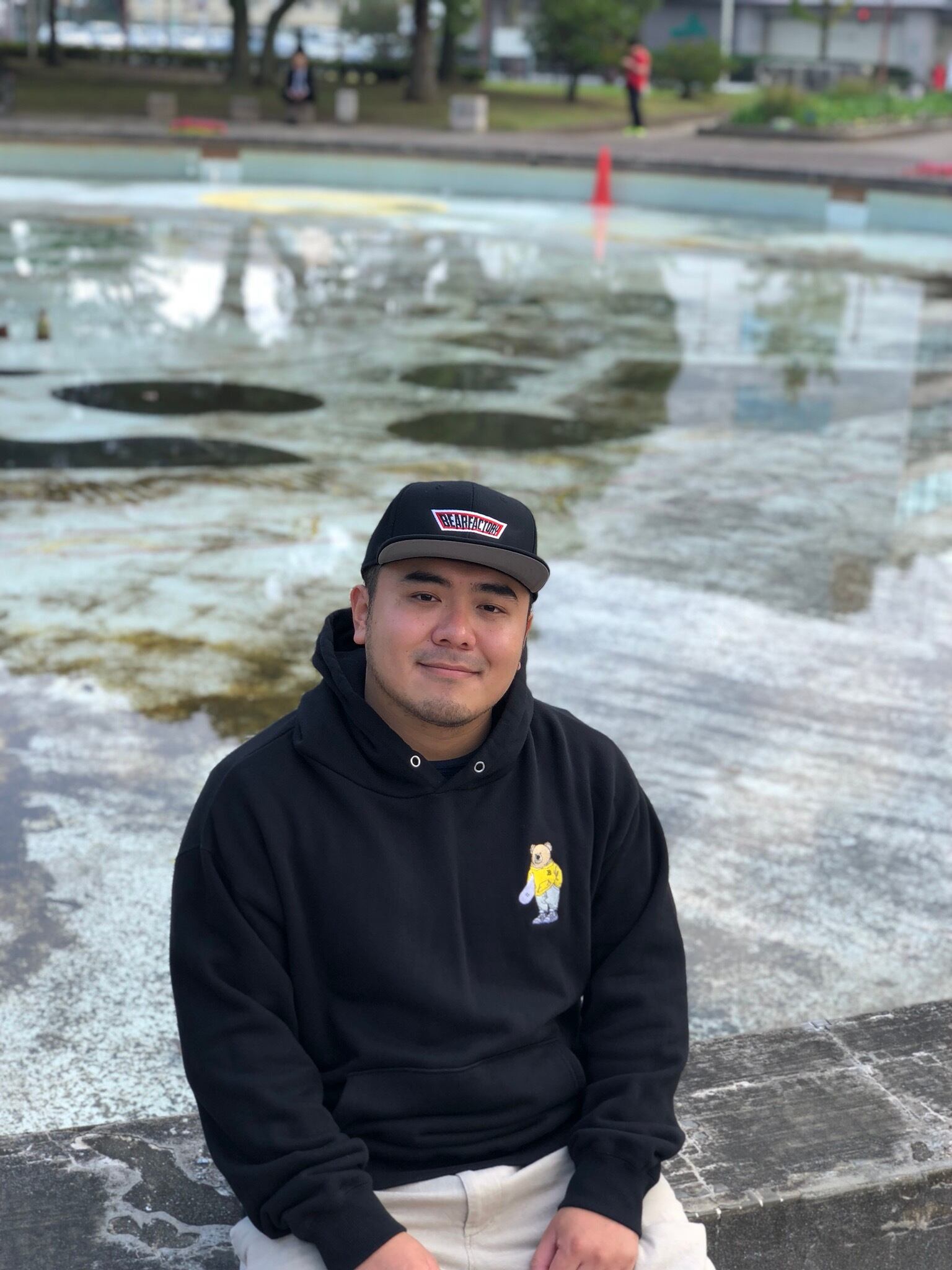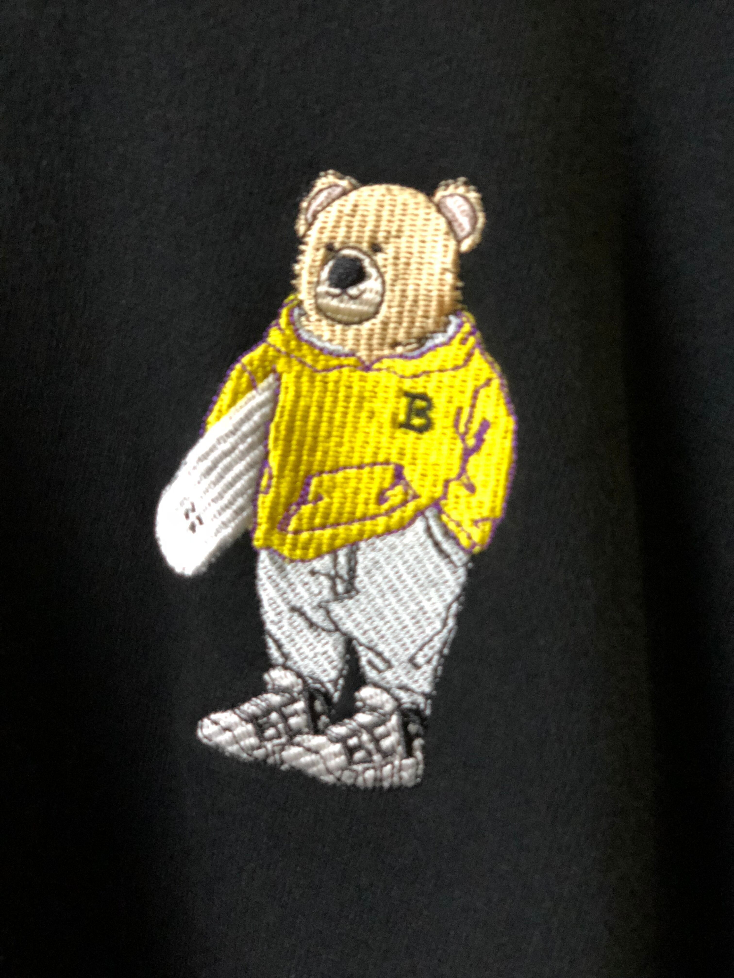 こちらのデザインは黄色×紫のパーカーを着た熊がスケボーを持ってます。