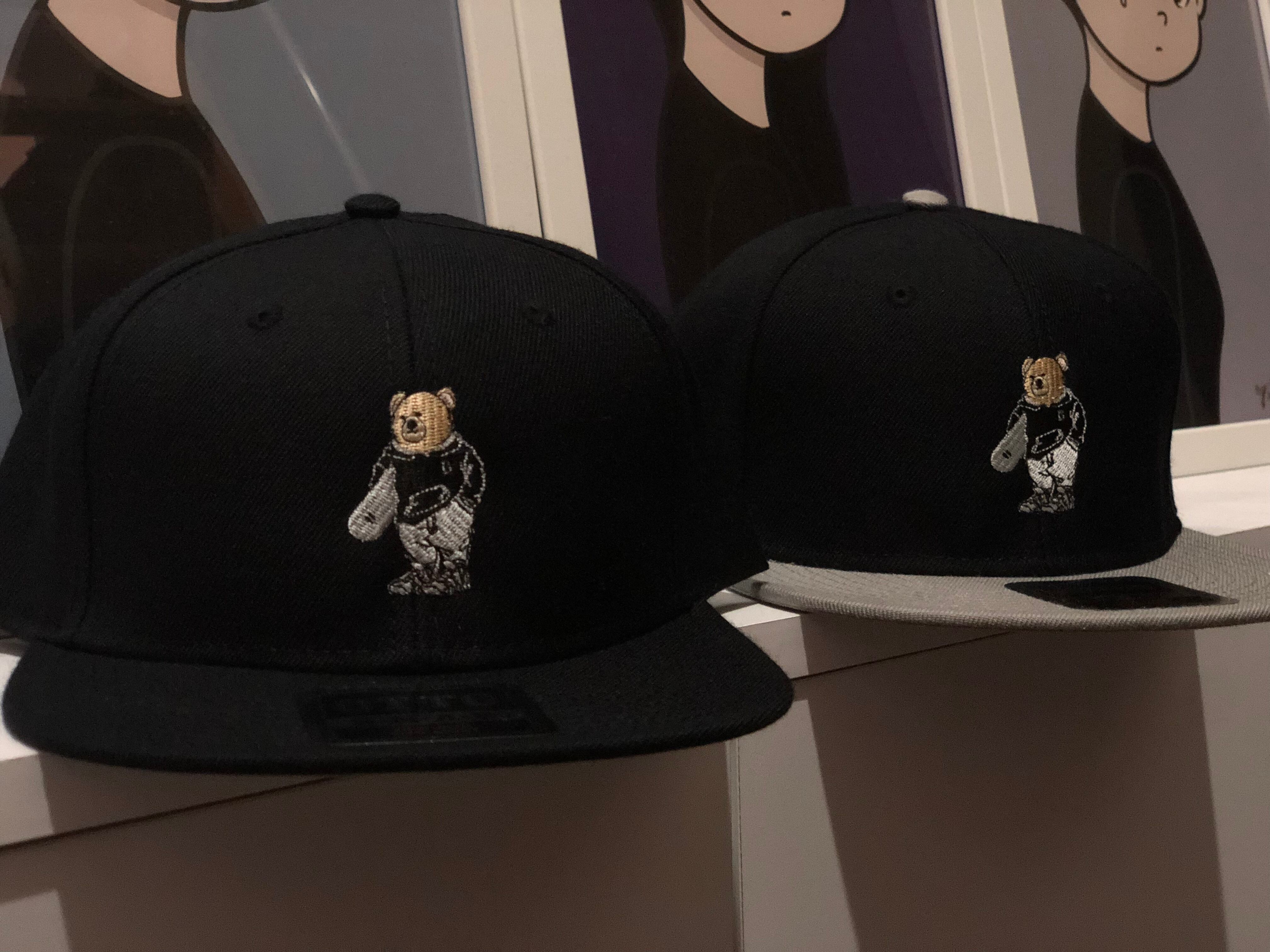 スケボー持っている熊(MO®️E BEAデザイン)とパーカーに手を突っ込んでいる熊(FO®️CE BEAデザイン)の2種類あります。