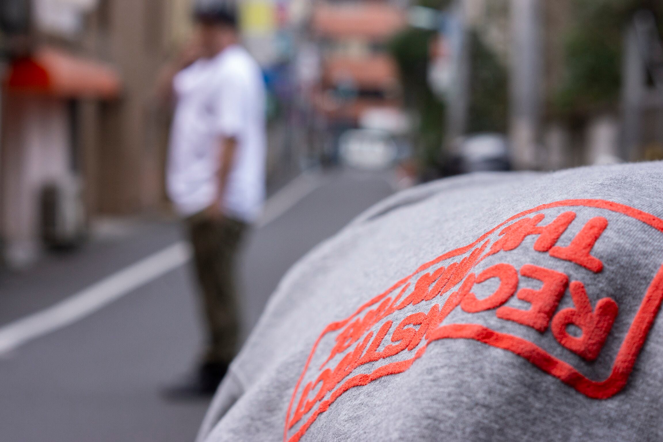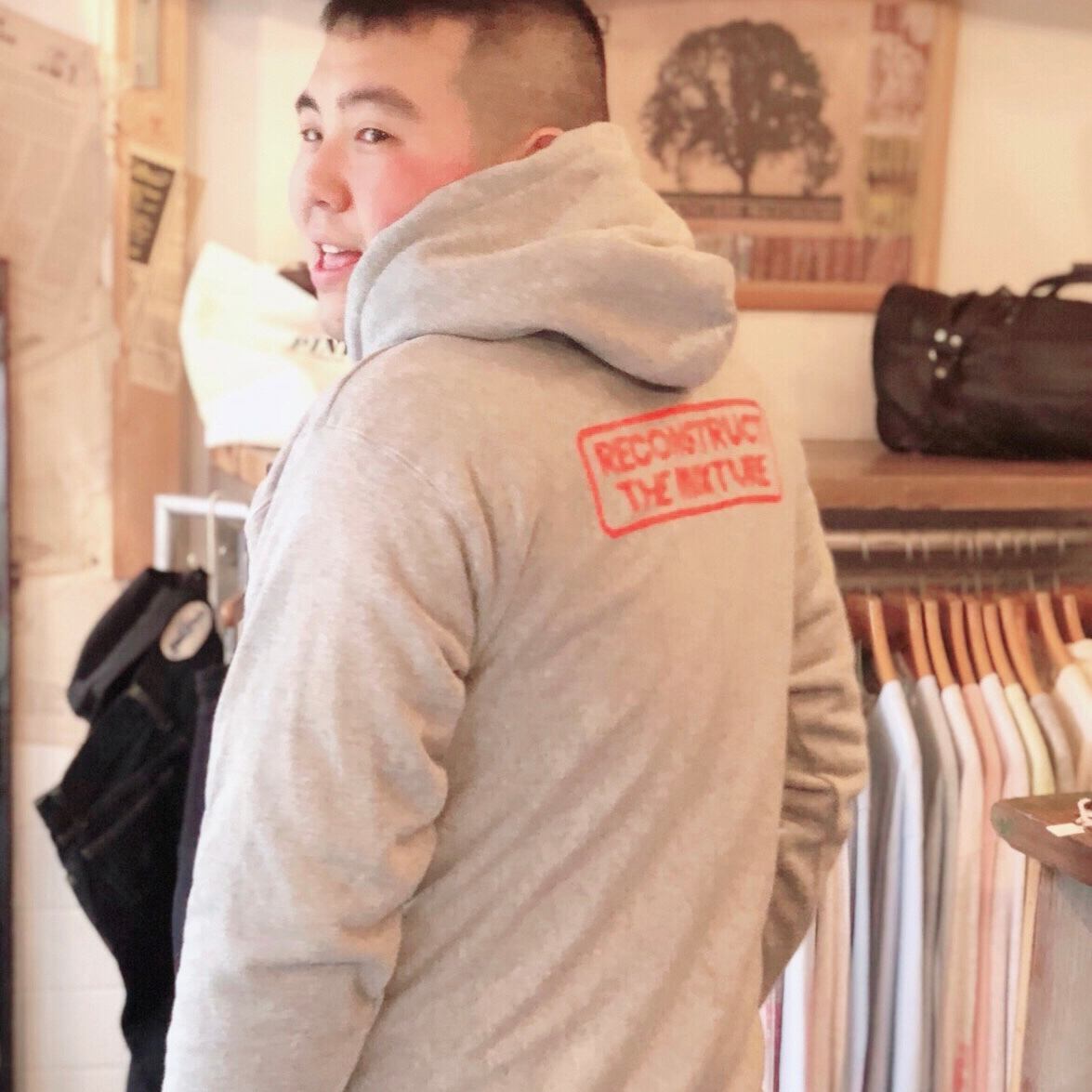 表にブランドロゴ、後ろにRECONSTRUCT THE MIXTUREのフレームロゴのプリント入り。左袖にはタグが付きます!