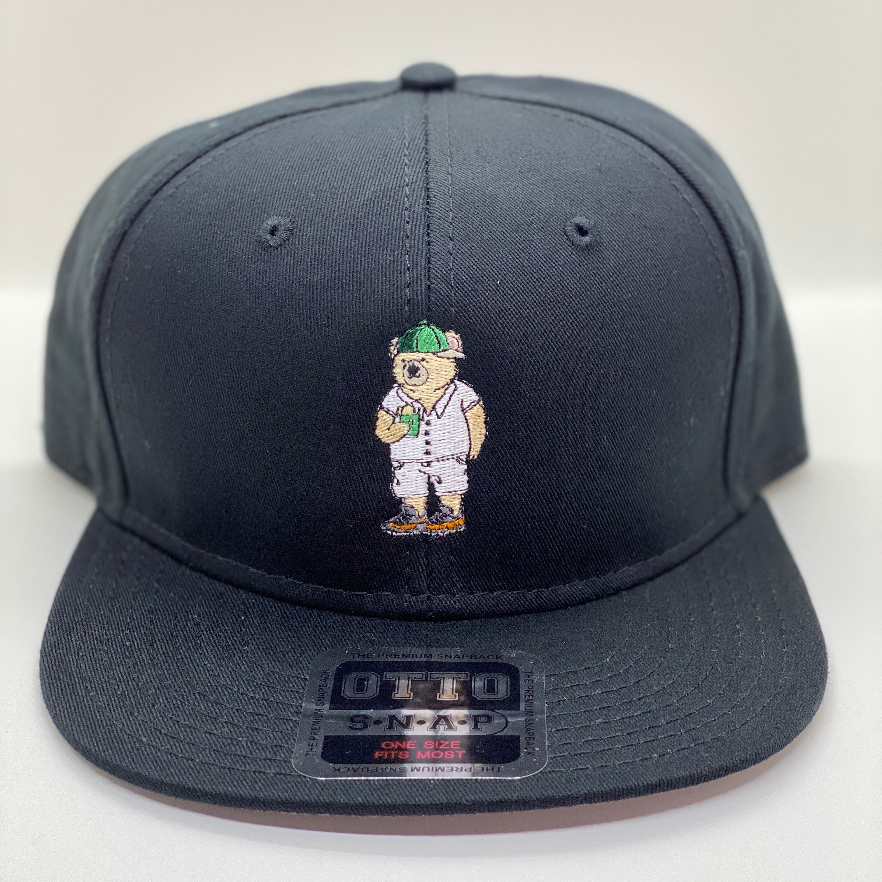 メロンフロートを持ってるセットアップのくまさんが刺繍されたベースボールキャップです。