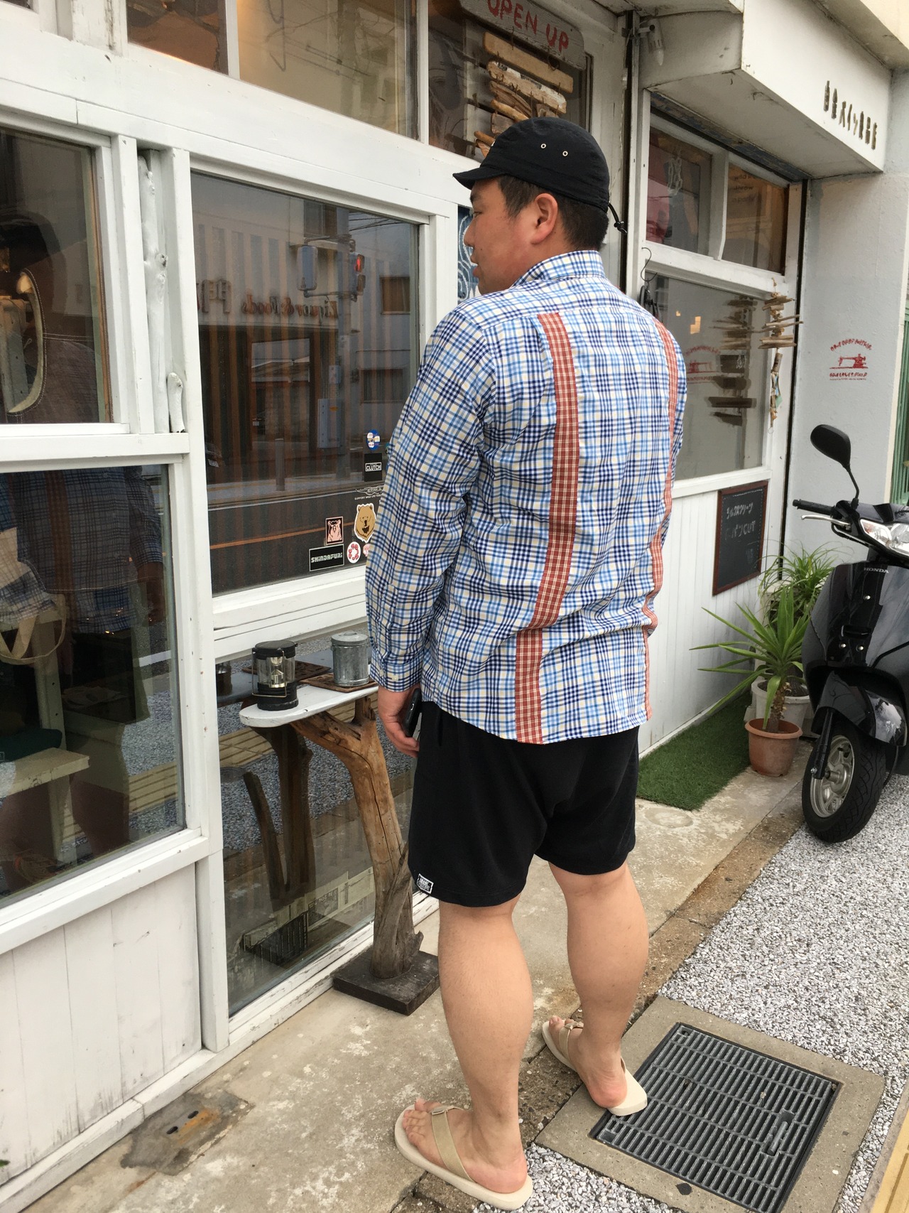 チェックシャツにチェック生地をドッキングしたリメイクシャツになります。