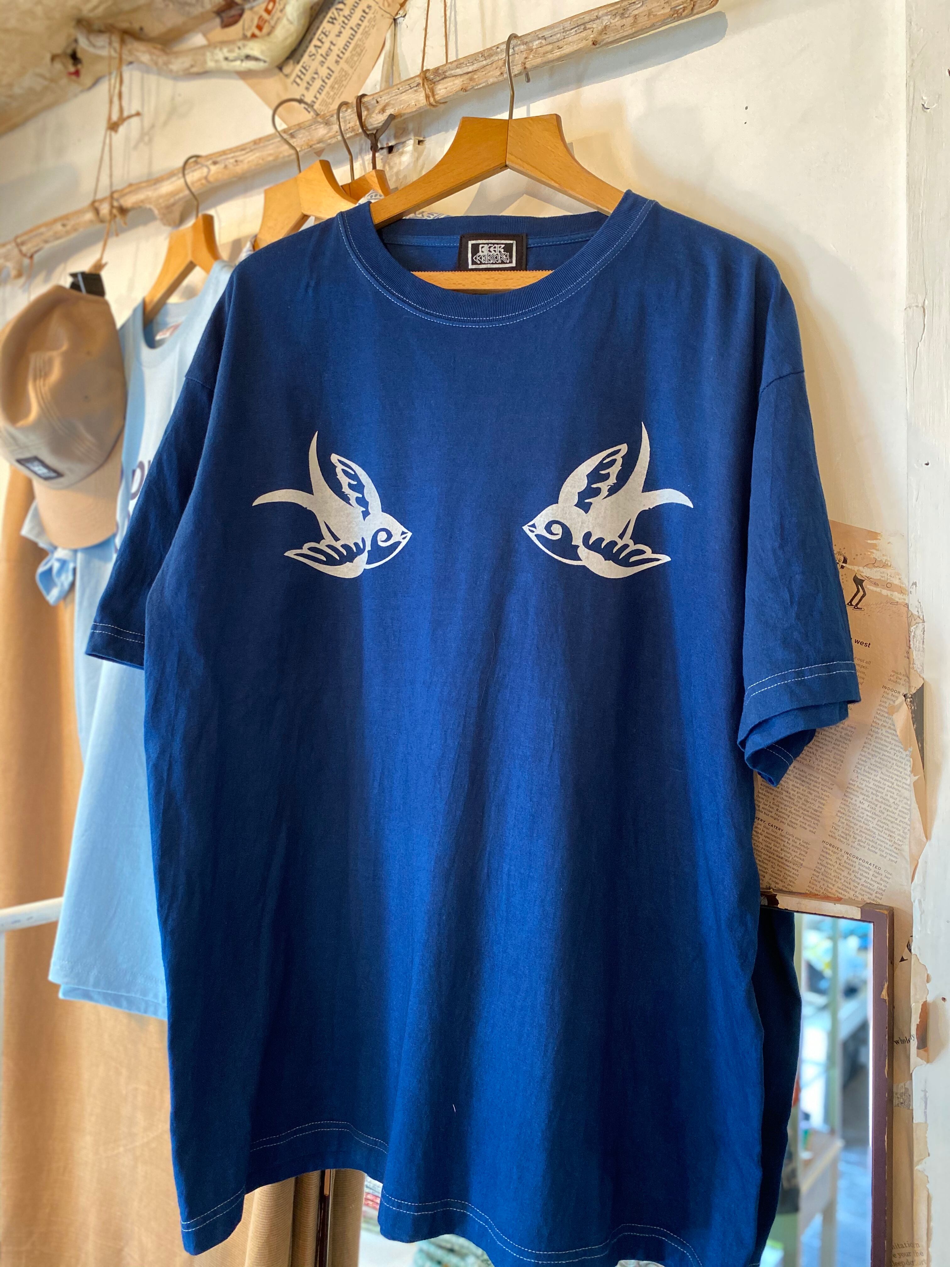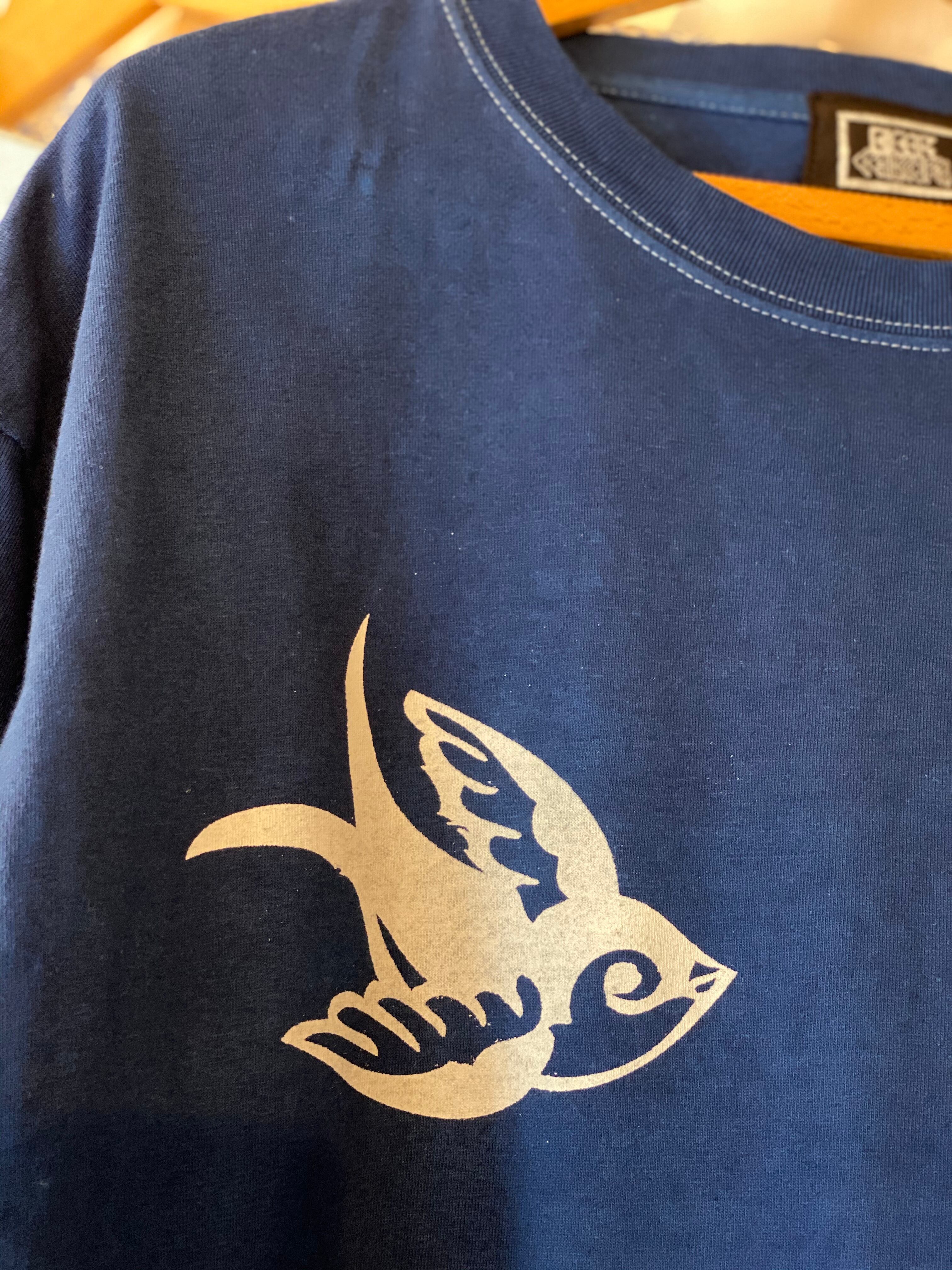 そのあとシルクスクリーンで丸燕をプリントしています。カラーもグレーに黒を加えて染色に合わせた色にしています。
