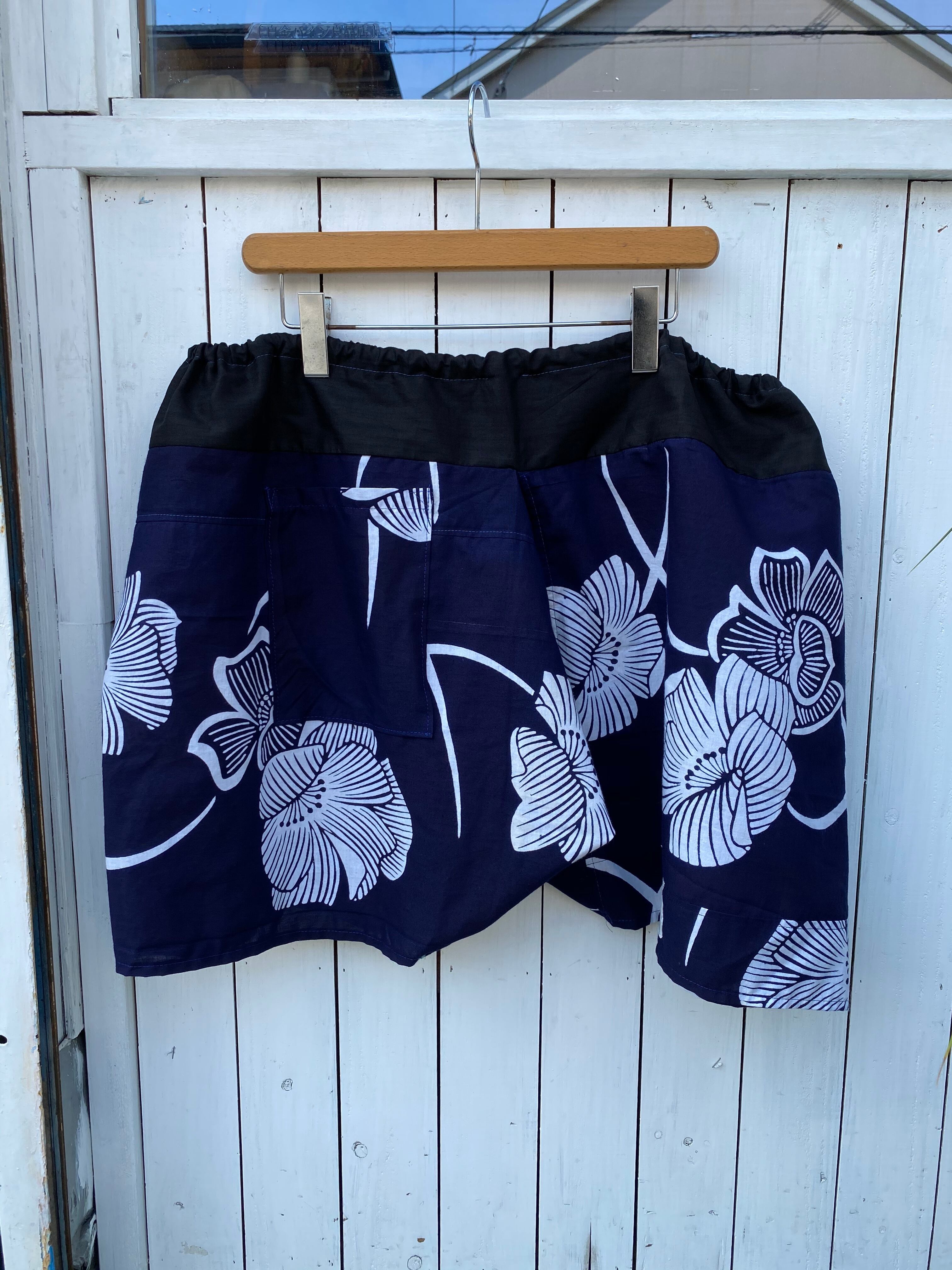 大きく見えますが股部分が広くしゅっとしています。お腹周りは紐で結ぶことが出来調整できます。