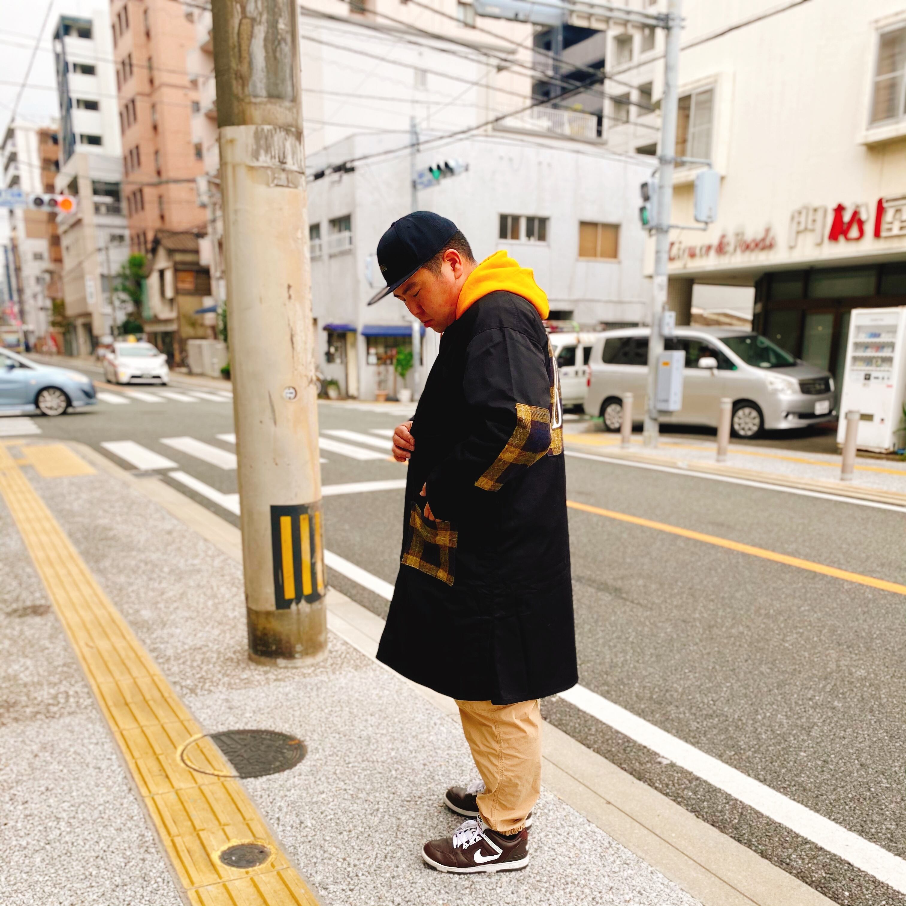 襟を取り外し、肘当て、背中、ポケットにチェックの布をあてています。