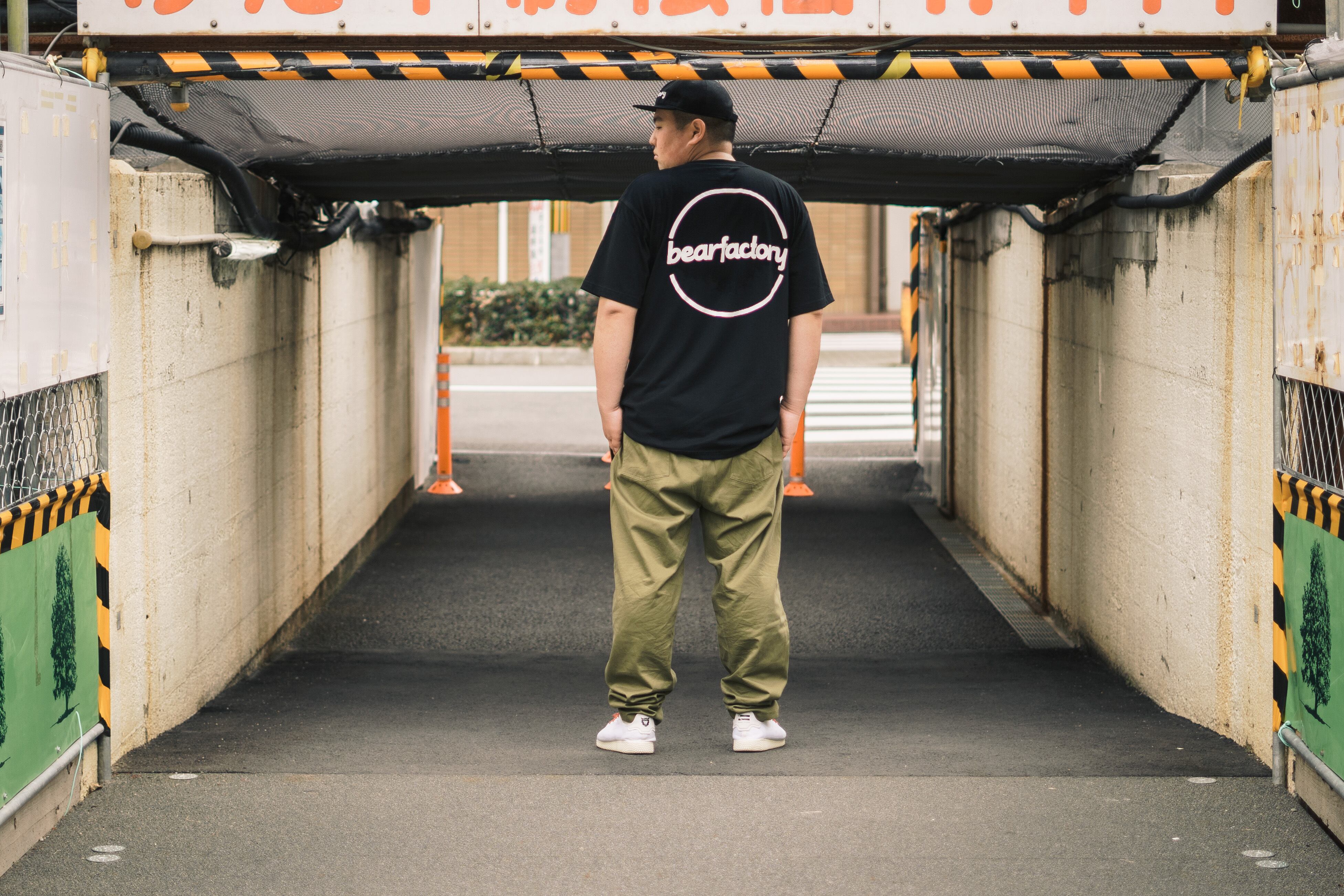 バックプリントにベアファクのアーチロゴを配置したクラシックデザイン。