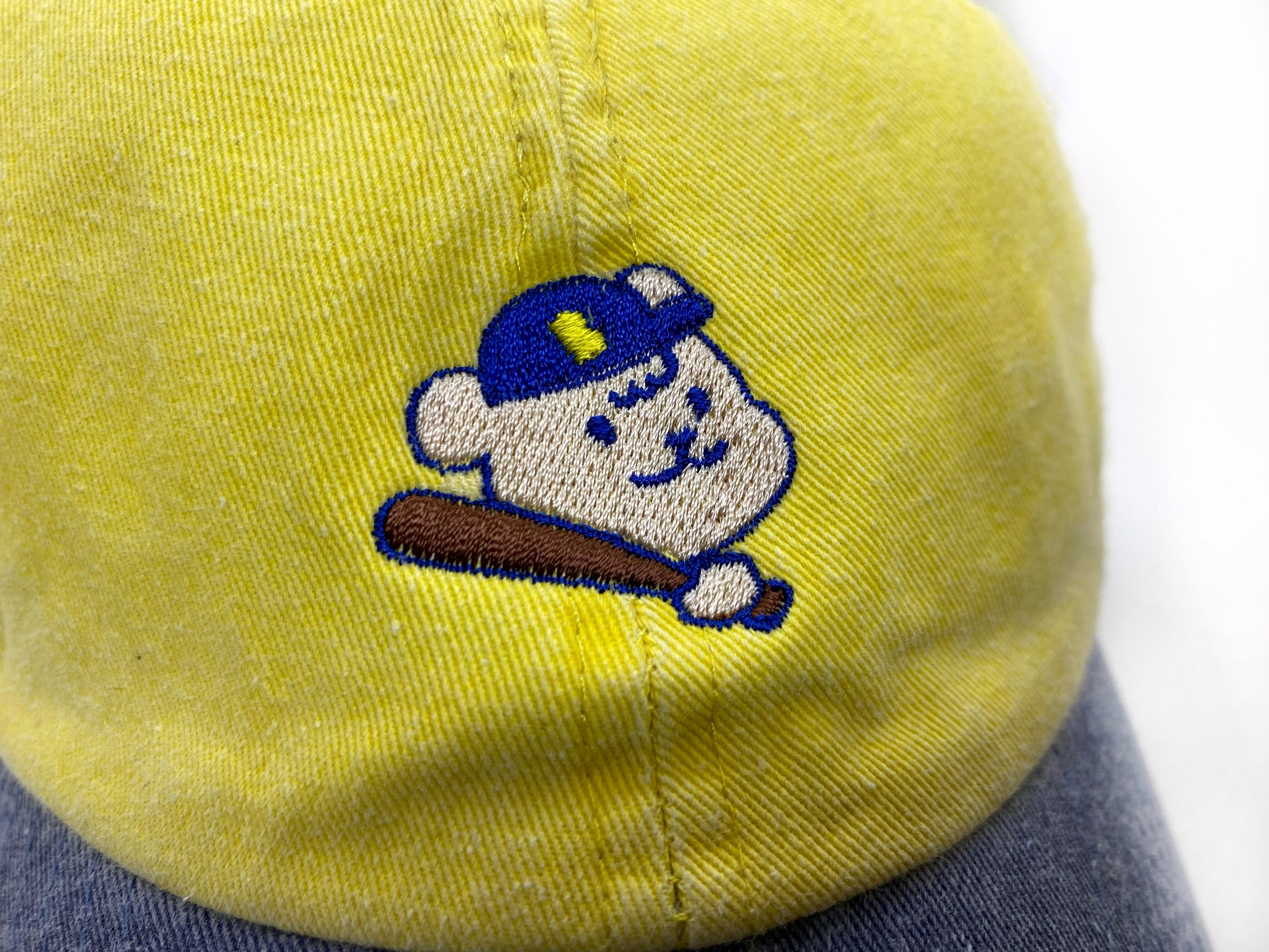 ベースボールキャップを被ったくまがワンポイントで刺繍が入っています!