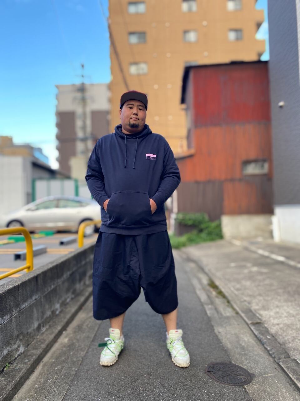 紺一色でモードな雰囲気が可愛いです。透けないよう股部分は浴衣素材で二重に当て布しています。