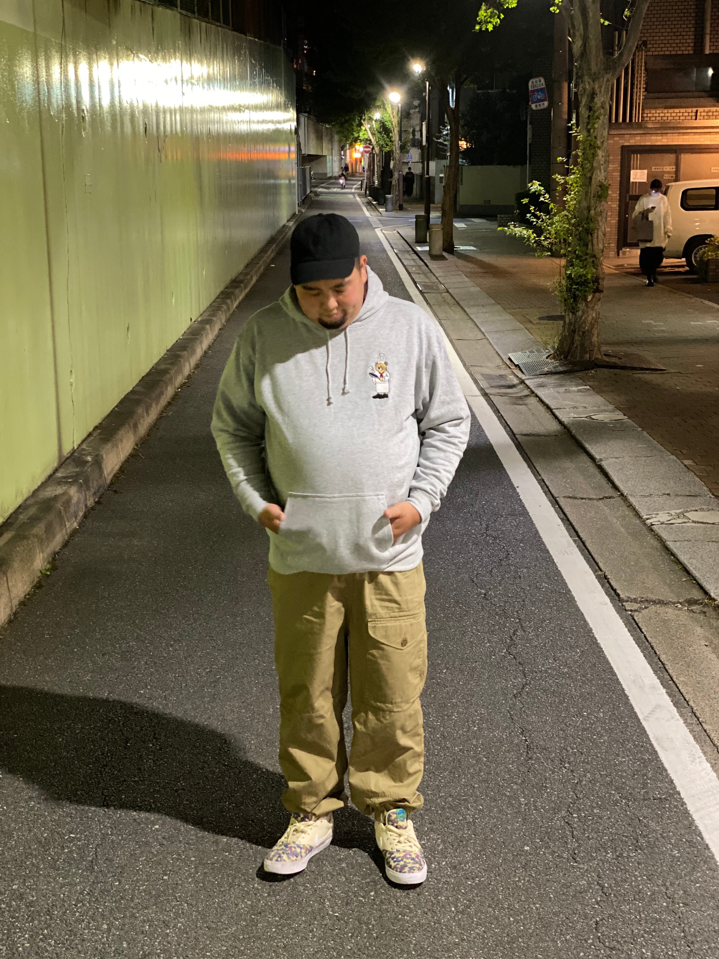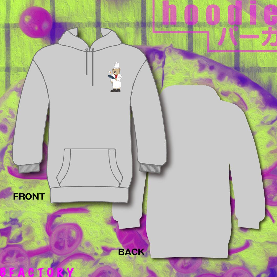 左胸にコックさんのワンポイント刺繍が入ったパーカーになります。