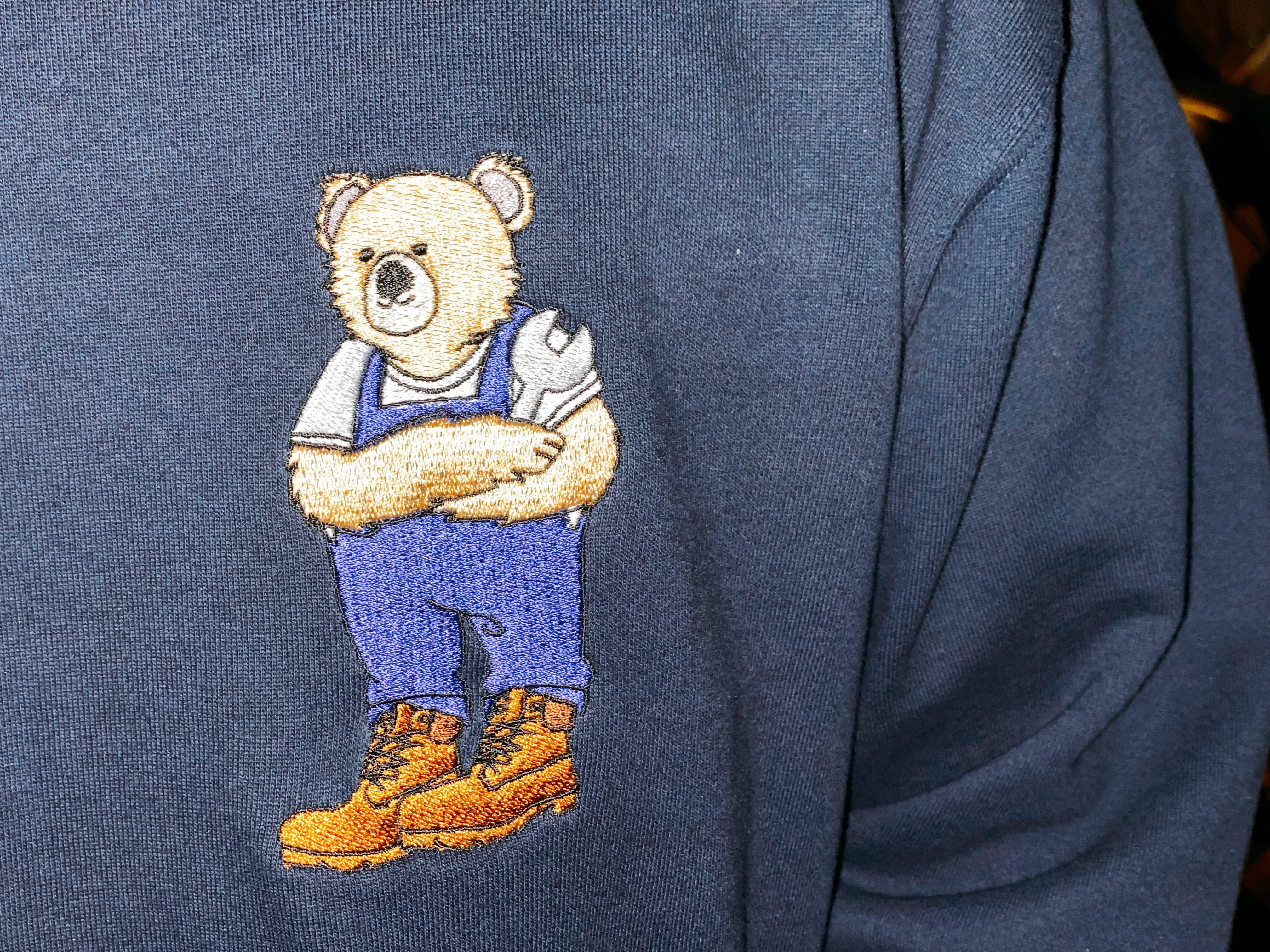 左胸に整備士さんのワンポイント刺繍が入ったパーカーになります。