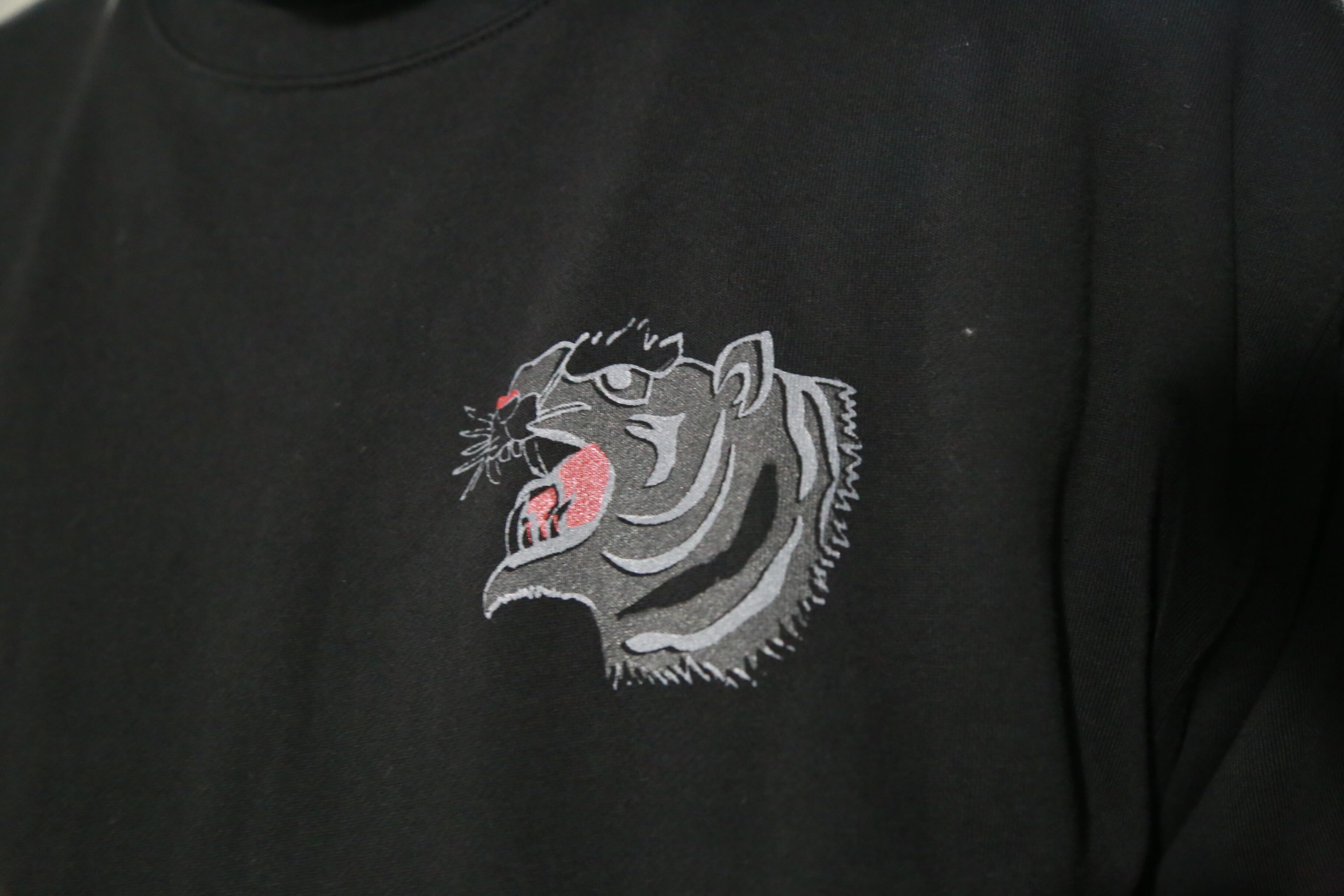 左胸の文字は発泡プリントになっています。肩にオリジナルタグが付きます!