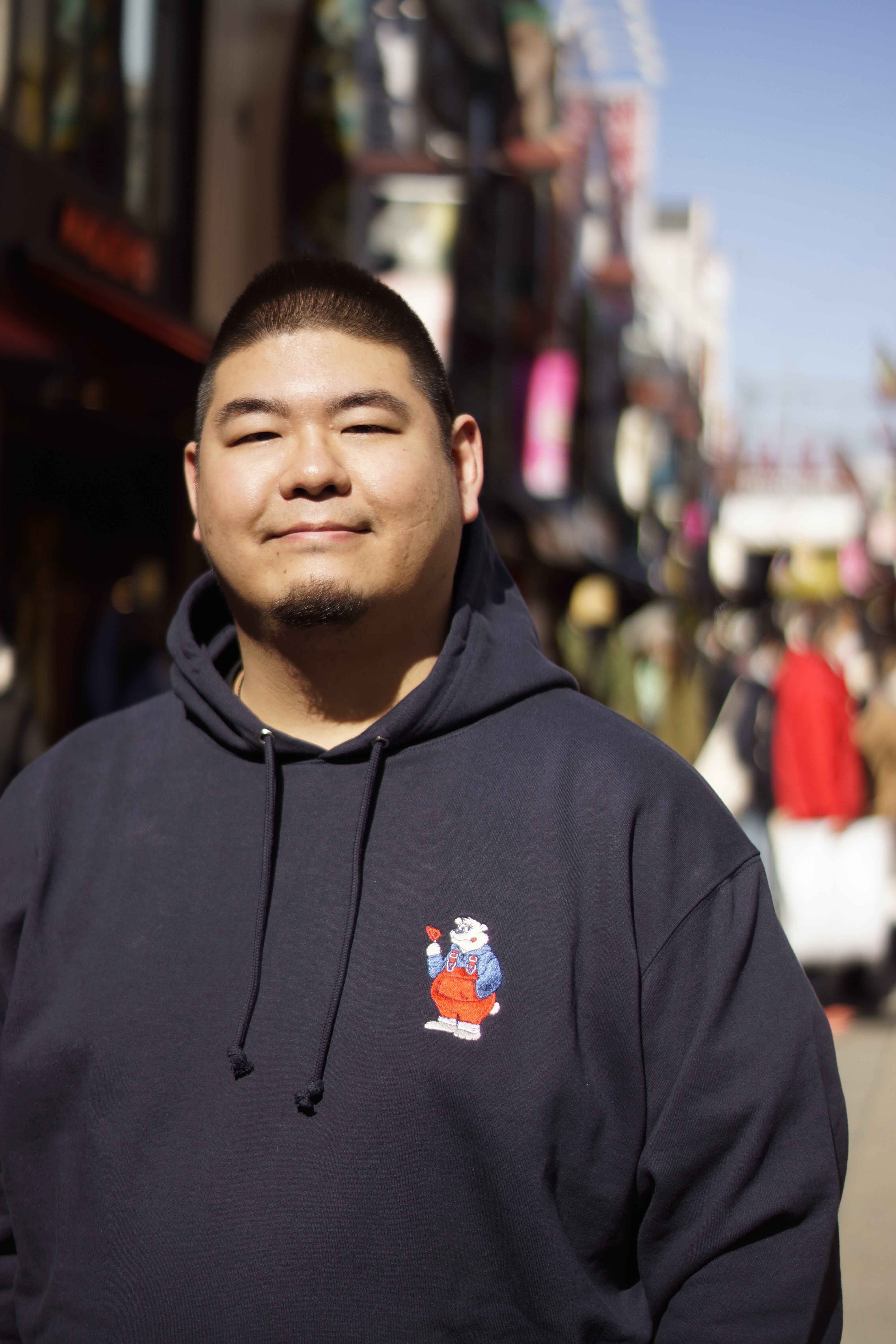 福岡にあるかどやのアイスを持ったくまの刺繍のパーカーです。