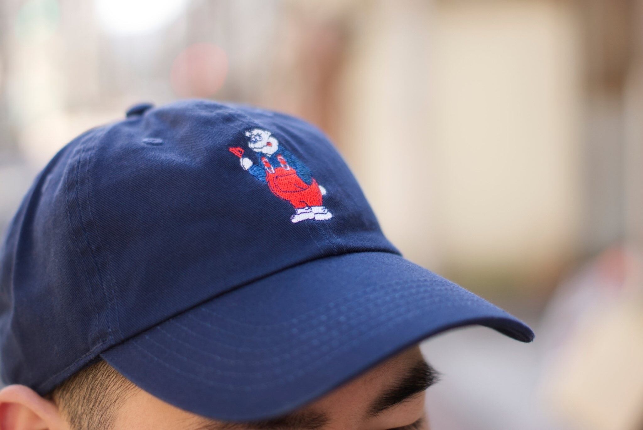 福岡にあるかどやのアイスを持ったくまの刺繍のキャップです。