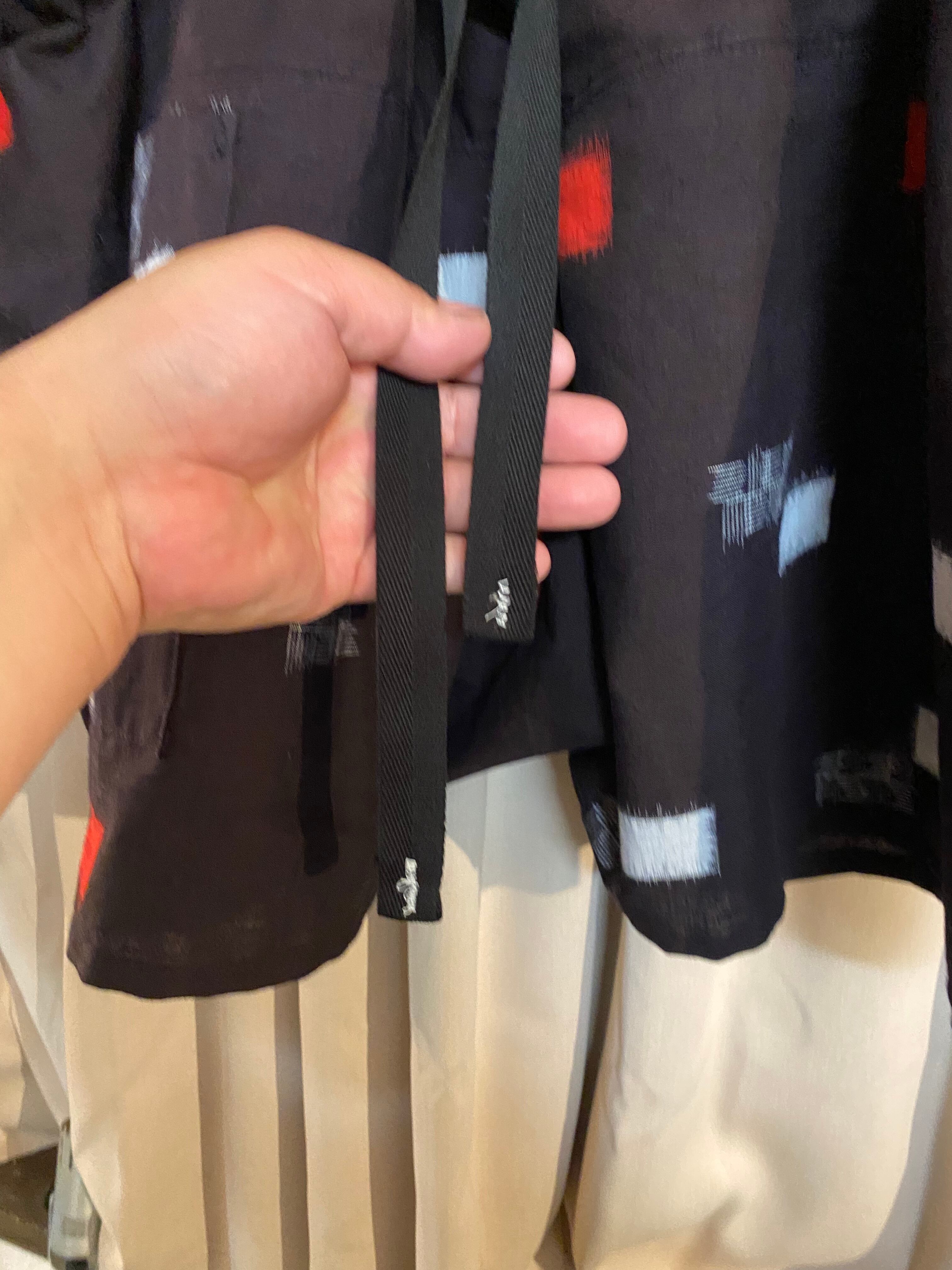 紐が付いてますので調節が出来ます。こちらのパンツは紐を長めにしています。