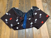 ヴィンテージの久留米かすりの反物と若乃花の相撲浴衣生地を使用してハンドメイドで製作した四股パンツになります。