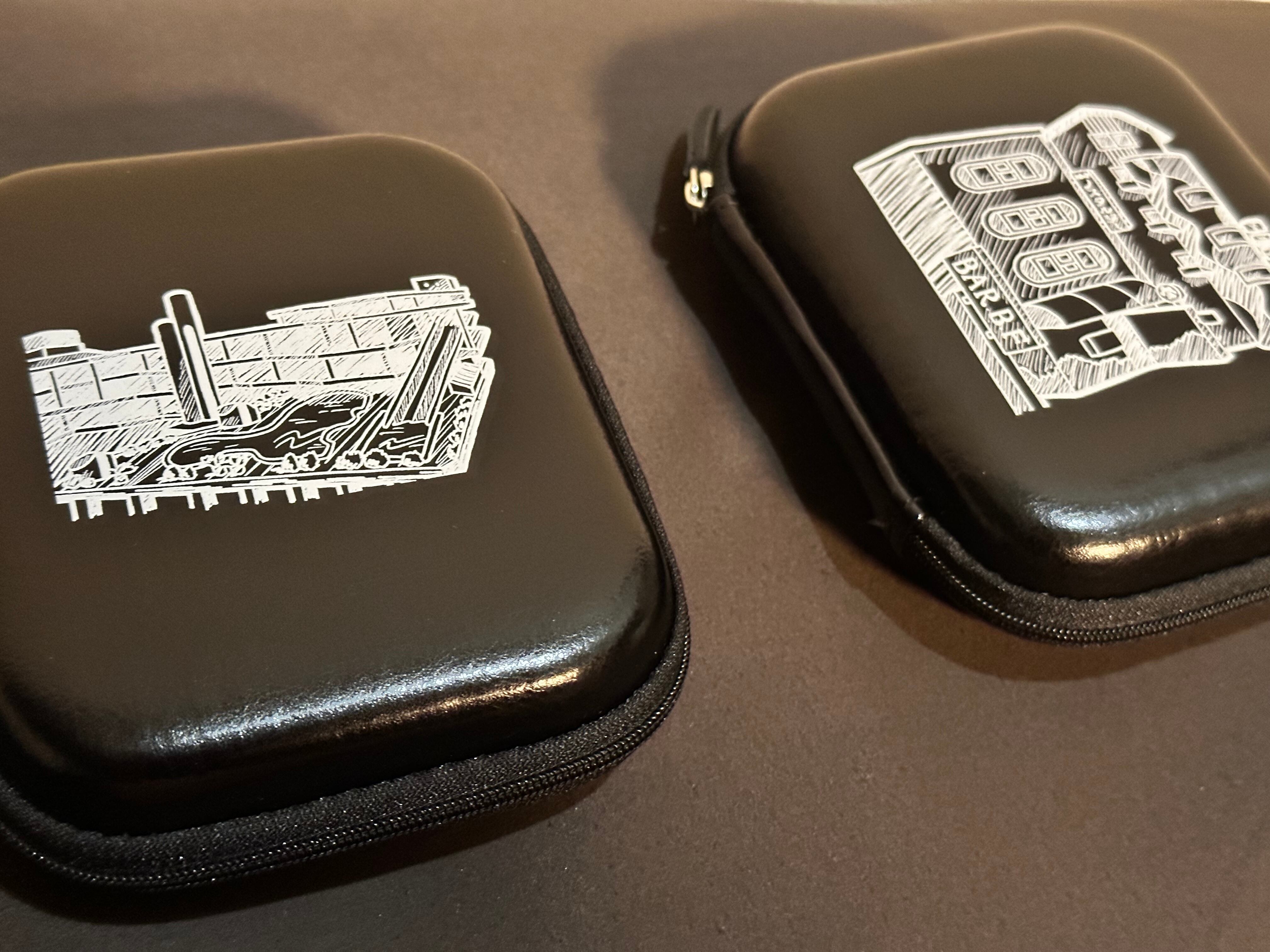 大きく開いて収納できる合皮素材のマルチケースです。