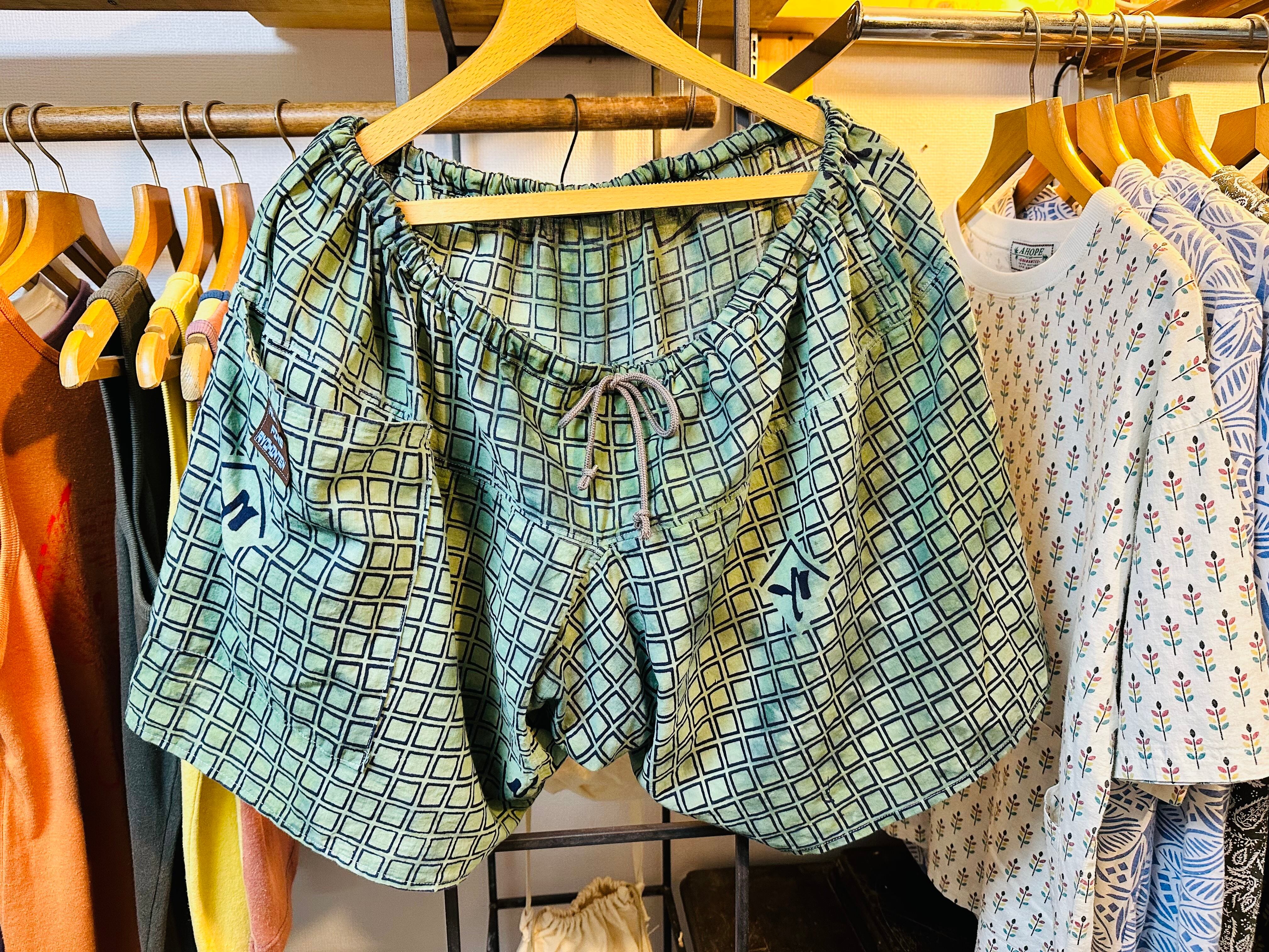 ヴィンテージの反物を使用してハンドメイドで製作した四股パンツになります。布は染め加工をしています!