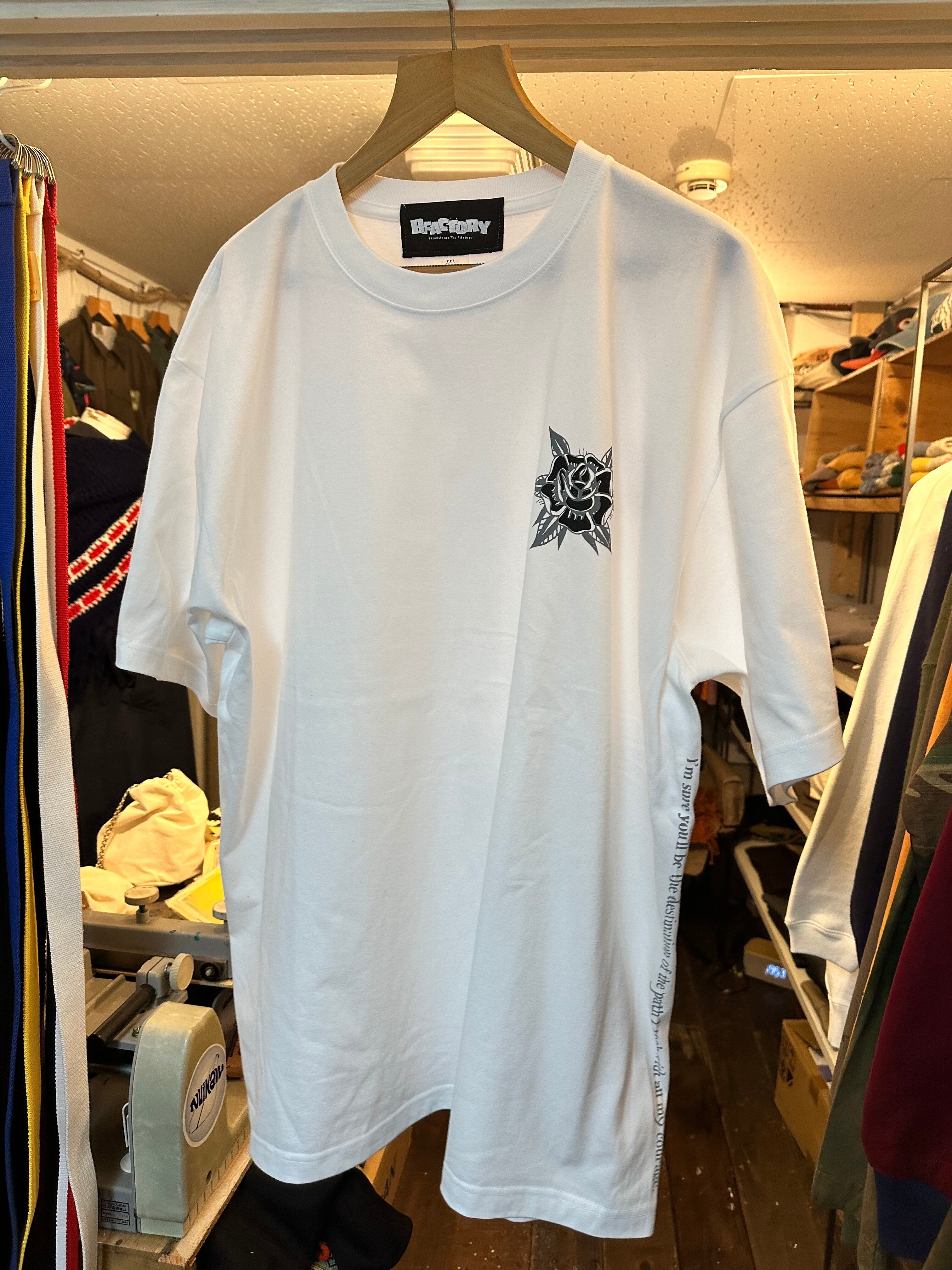左胸に黒と灰で薔薇の花、脇下にもプリントしています。